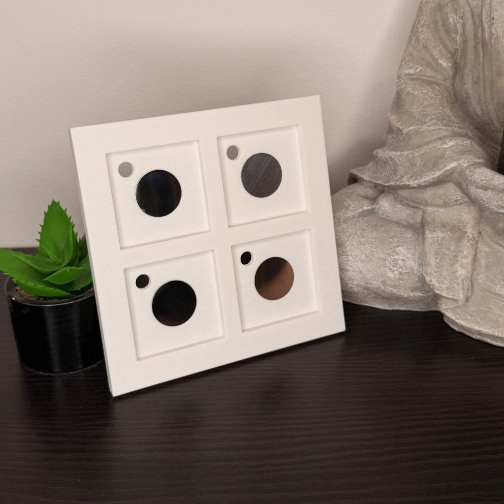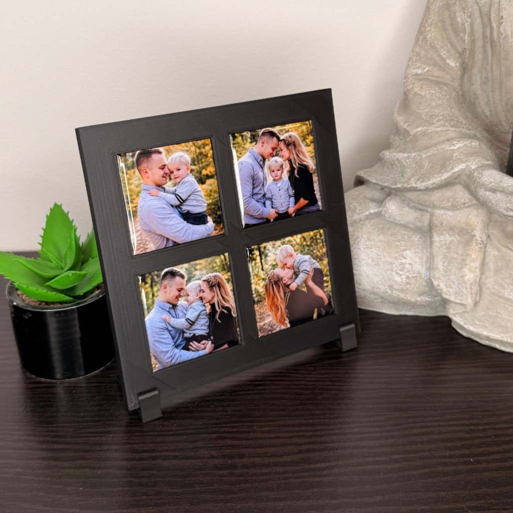 Hledáš jednoduchý a moderní způsob, jak vystavit více magnetek pohromadě? Tento stojánek na magnetky 2×2 umožní vytvořit přehlednou koláž ze 4 fotomagnetek a proměnit tvoje vzpomínky ve stylový doplněk na stole, polici nebo lednici.