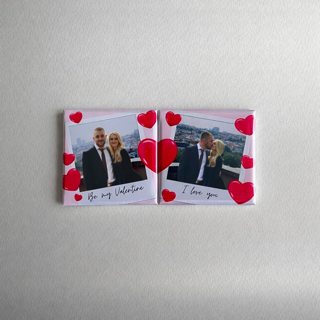Romantická sada dvou fotomagnetek z vlastních fotografií, kdy každá magnetka obsahuje jednu fotografii. Po přiložení k sobě vytvoří spojené srdce. Originální dárek z lásky k Valentýnu i pro každý den.